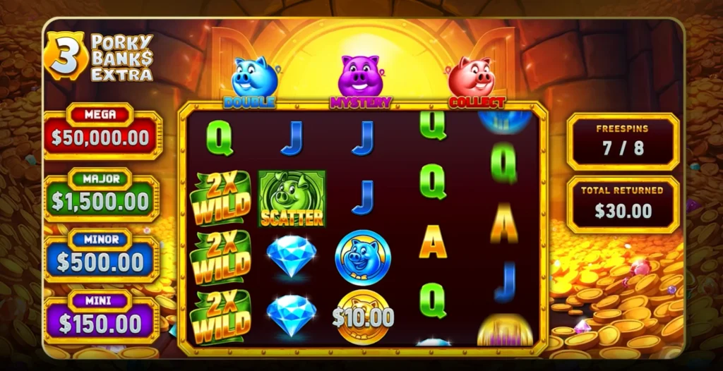 | 3 Porky Banks Extra | Iron Dog Studio | 95.13% | 5,000x | 30 | Enhanced version with additional features |